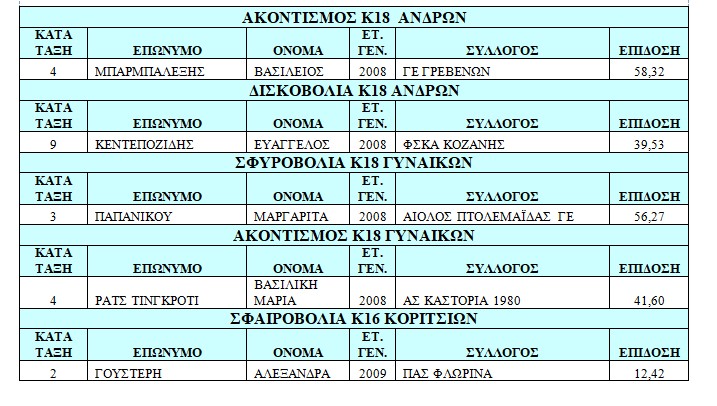 Το Διοικητικό Συμβούλιο της ΕΑΣ ΣΕΓΑΣ Δυτικής Μακεδονίας, συγχαίρει τους αθλητές της που επιλέχθηκαν και εντάχθηκαν στο Πρόγραμμα του ΣΕΓΑΣ : ΝΕΑΡΩΝ ΑΘΛΗΤΩΝ – ΑΘΛΗΤΡΙΩΝ 14 – 17 ΕΤΩΝ “ΓΥΜΝΑΖΟΜΑΙ ΜΕ ΤΟΥΣ ΚΑΛΥΤΕΡΟΥΣ”.
