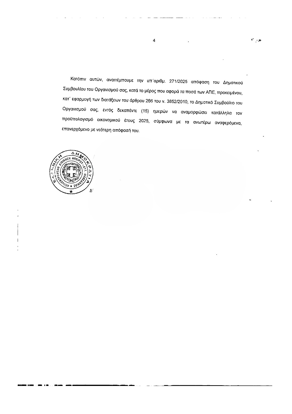 Με την απόφαση της αυτή η Αποκεντρωμένη Διοίκηση Ηπείρου – Δυτ. Μακεδονίας όπως έχει την αρμοδιότητα, αναπέμπει την απόφαση του Δημοτικού Συμβουλίου και ζητά την αναμόρφωση του προϋπολογισμού του έτους 2025 εντός 15 ημερών!