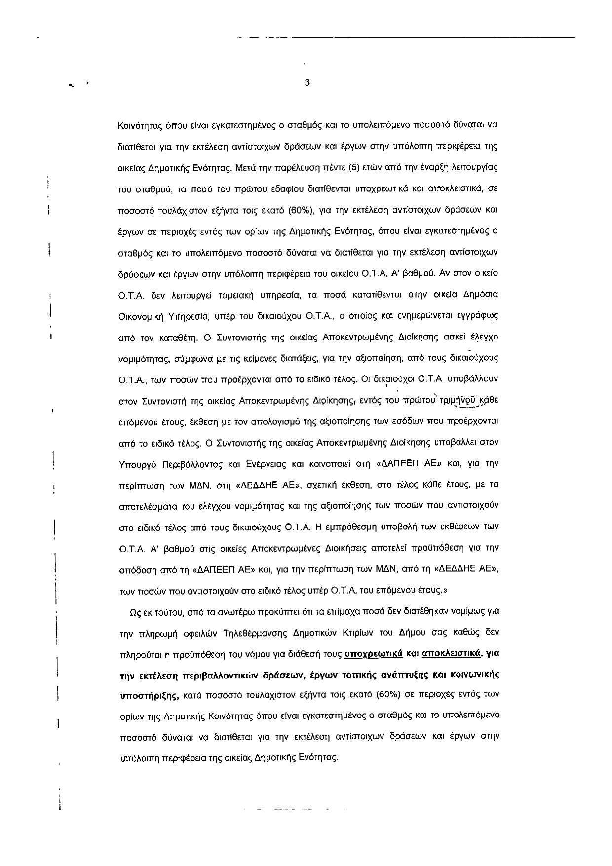 Με το ίδιο σκεπτικό και η Αποκεντρωμένη Διοίκηση στην απόφασή της τονίζει πως τα συγκεκριμένα κονδύλια οδηγούνται «υποχρεωτικά και αποκλειστικά» για την εκτέλεση περιβαλλοντικών δράσεων, έργων τοπικής ανάπτυξης και κοινωνικής υποστήριξης των κοινοτήτων και ουσιαστικά βγάζει στη… σέντρα τη δημοτική αρχή με την απόφαση που έλαβε.