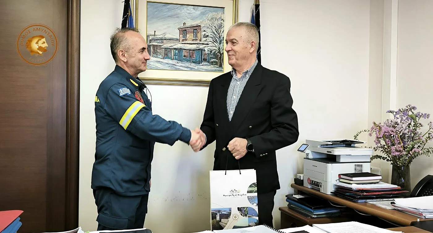 Τον Δήμαρχο Αμυνταίου, Ιωάννη Λιάση, επισκέφθηκαν στο Δημαρχείο Αμυνταίου το πρωί της Δευτέρας 30 Μαρτίου 2026, ο Βουλευτής Φλώρινας Σταύρος Παπασωτηρίου, ο Αναπληρωτής Περιφερειάρχης Δυτικής Μακεδονίας Λάζαρος Γκερεχτές, ο Αρχιπύραρχος Ιωάννης Αμανατίδης, ο Αντιπεριφερειάρχης Π.Ε. Φλώρινας Αθανάσιος Τάσκας και ο Αντιπεριφερειάρχης Πολιτικής Προστασίας, Κλιματικής Κρίσης και Π.ΑΜ. Π.Σ.Ε.Α. Ιωάννης Κιοσές, στο πλαίσιο ευρείας σύσκεψης με αντικείμενο τη δρομολόγηση των διαδικασιών για τη στέγαση και λειτουργία του νέου Πυροσβεστικού Κλιμακίου στην περιοχή του Αμυνταίου.