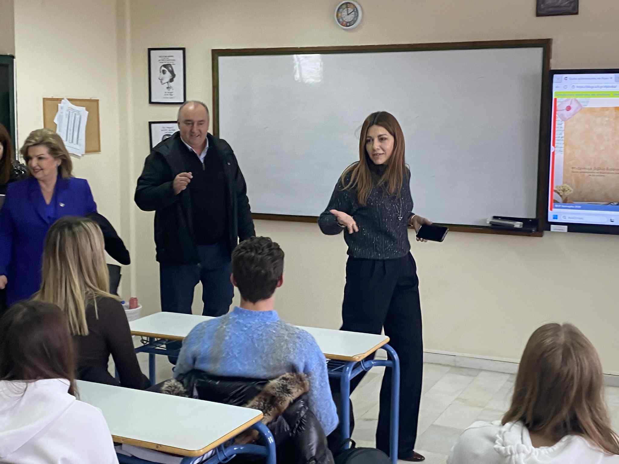 Εκεί παρακολούθησε μέρος της ημερίδας για το ψηφιακό φροντιστήριο, την οποία παρακολούθησαν καθηγητές από όλη την ΠΕ Κοζάνης. Έπειτα, επισκέφθηκε μια αίθουσα του σχολείου, στην οποία ήταν σε εξέλιξη όμιλος φιλαναγνωσίας.