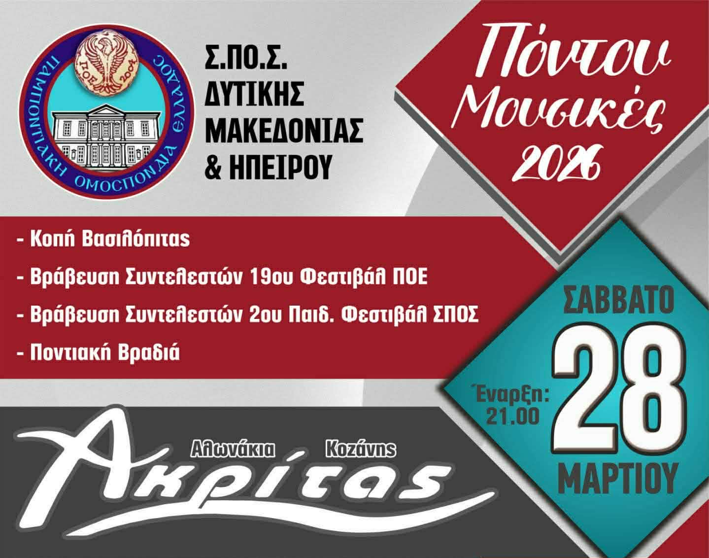 Η εκδήλωση θα πραγματοποιηθεί το Σάββατο 28 Μαρτίου, στις 21:00, στο Οικογενειακό Κέντρο «Ακρίτας» στα Αλωνάκια Κοζάνης, σε έναν χώρο που επελέγη λόγω της κεντρικής του θέσης, ώστε να διευκολυνθούν οι μετακινήσεις συλλόγων από Γιάννενα, Φλώρινα, Γρεβενά και ολόκληρη την περιφέρεια.