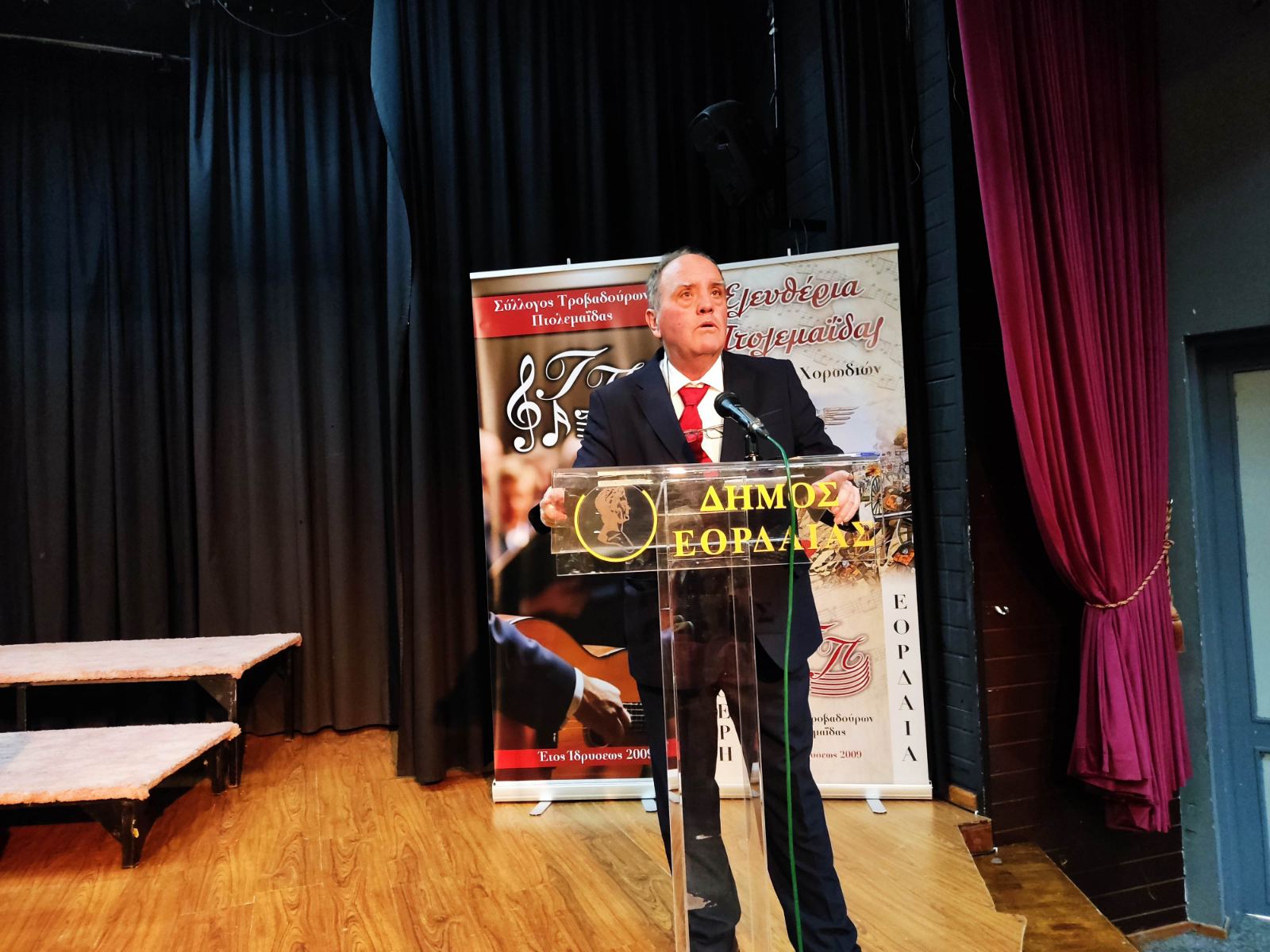 Η εκδήλωση, αφιερωμένη στη μνήμη των αγώνων για την ελευθερία, συγκέντρωσε πλήθος κόσμου που απόλαυσε μια βραδιά γεμάτη μουσική, ιστορική αναφορά και συγκίνηση. Στη συνάντηση συμμετείχαν ο Μορφωτικός Όμιλος Βελβεντού, η Πολυφωνική Χορωδία Βαρβούτειου Δημοτικού Ωδείου Πτολεμαΐδας, ο Μορφωτικός Σύλλογος «Η Ορεστίς» Άργους Ορεστικού και φυσικά ο Σύλλογος Τροβαδούρων Πτολεμαΐδας.
