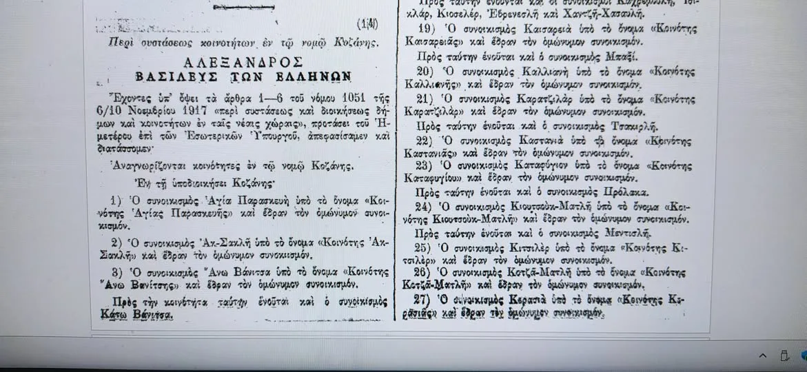 Περὶ μετονομασίας κοινοτήτων καὶ συνοικισμῶν Μακεδονίας.