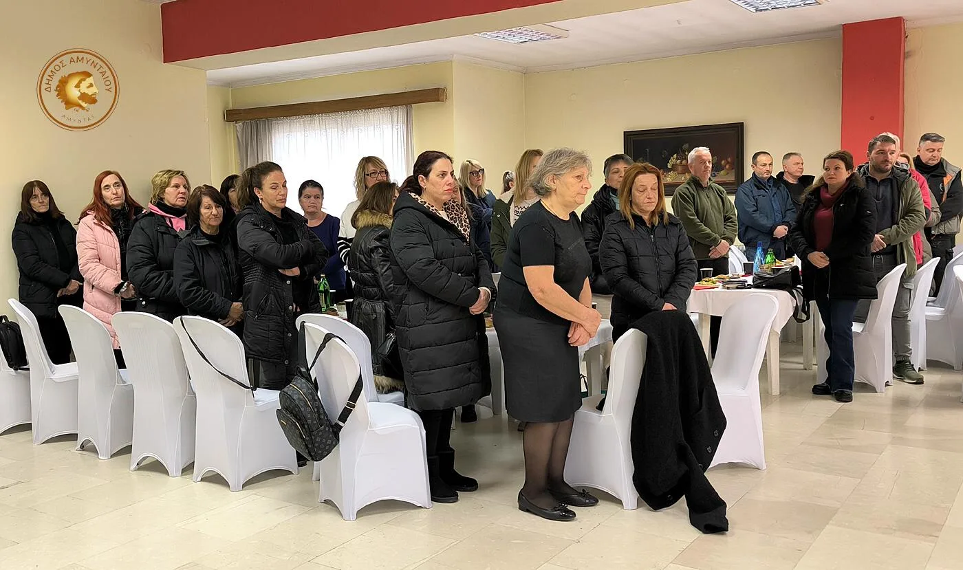Κατά τη διάρκεια της εκδήλωσης, ο Δήμαρχος Αμυνταίου Ιωάννης Λιάσης απηύθυνε ευχές προς όλες και όλους για μια καλή και παραγωγική χρονιά, με υγεία, δύναμη και δημιουργικότητα. Παράλληλα, εξέφρασε δημόσια τις ευχαριστίες του προς τους εργαζομένους του Δήμου, υπογραμμίζοντας ότι η καθημερινή τους προσπάθεια αποτελεί βασική προϋπόθεση για την παροχή ποιοτικών υπηρεσιών προς τους δημότες και την τοπική κοινωνία.
