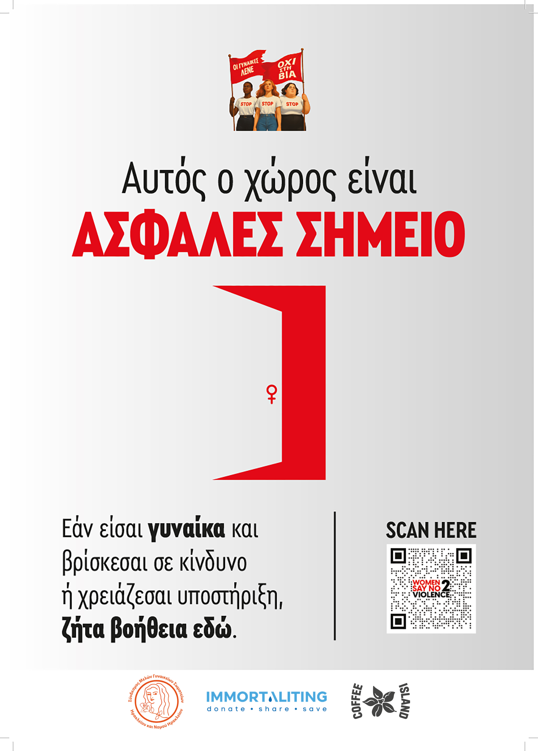 Με αφορμή την Παγκόσμια Ημέρα για την Εξάλειψη της Βίας κατά των Γυναικών, η Coffee Island ενώνει τη φωνή της με την ΑΜΚΕ Immortaliting και τον Σύνδεσμο Μελών Γυναικείων Σωματείων Ηρακλείου & Ν. Ηρακλείου, για να στείλει ένα ξεκάθαρο μήνυμα: