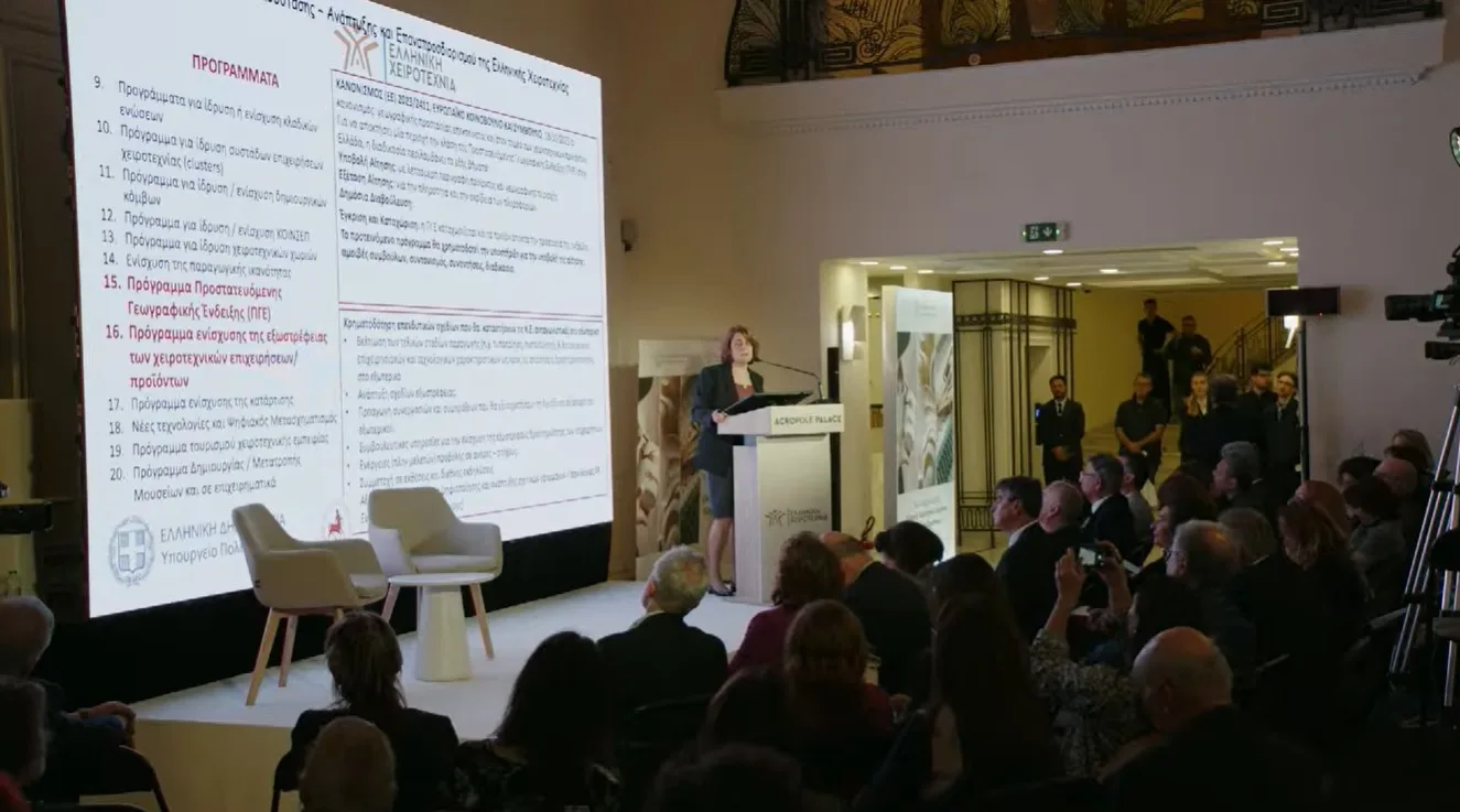Στην ομιλία της η υπουργός Πολιτισμού Λίνα Μενδώνη έκανε λόγο για στρατηγική επιλογή του υπουργείου Πολιτισμού για την αναβίωση και μετάδοση ενός τεράστιου πολιτιστικού κεφαλαίου, καθώς όπως τόνισε «Η χειροτεχνία υπήρξε επί αιώνες τρόπος επιβίωσης και πολιτιστικής έκφρασης. Στόχος μας να δημιουργήσουμε ένα βιώσιμο πρότυπο ανάπτυξης».