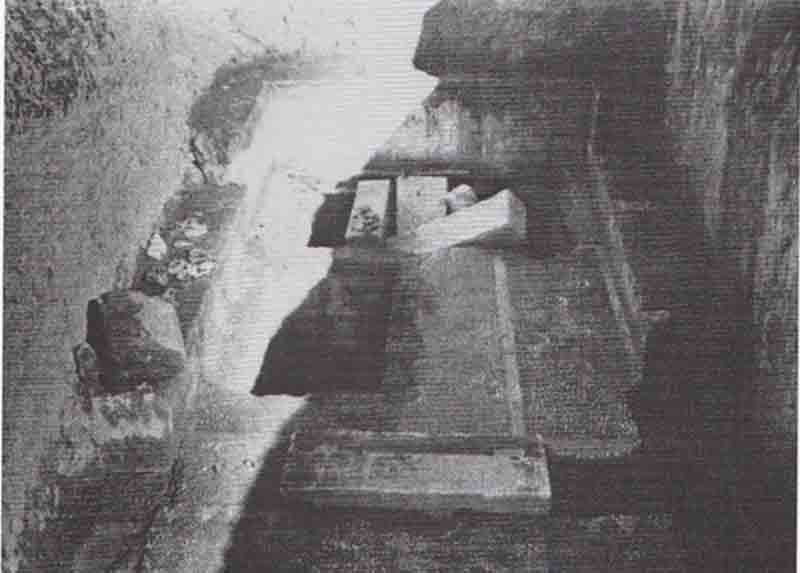 » Κατά την ανασκαφή, μπροστά στην είσοδο του νεκρικού θαλάμου βρέθηκε η επίστεψη μιας μεγάλης επιτύμβιας στήλης, ύψους 1,08 μ., με διακόσμηση ωραίου μαρμάρινου ανθεμίου. Η βάση του κοσμείται με διπλή σειρά φύλλων άκανθας, απ’ όπου βγαίνουν βλαστεί που ελίσσονται στα πλάγια. Ο τάφος χρονολογείται στον 3ο αι. π.Χ.»