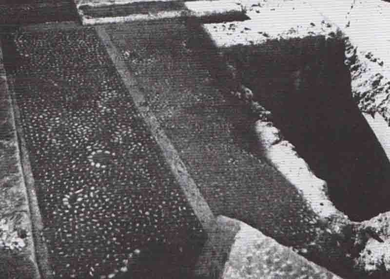 Ο προθάλαμος του Τάφου III της Αμφίπολης. Διακρίνεται το μωσαϊκό με τους ρόμβους