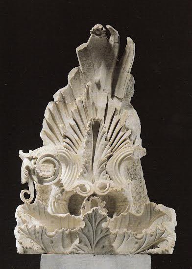Περίτεχνο διακοσμητικό ανάγλυφο, κομμάτι από την επίστεψη της επιτύμβιας στήλης της εισόδου
