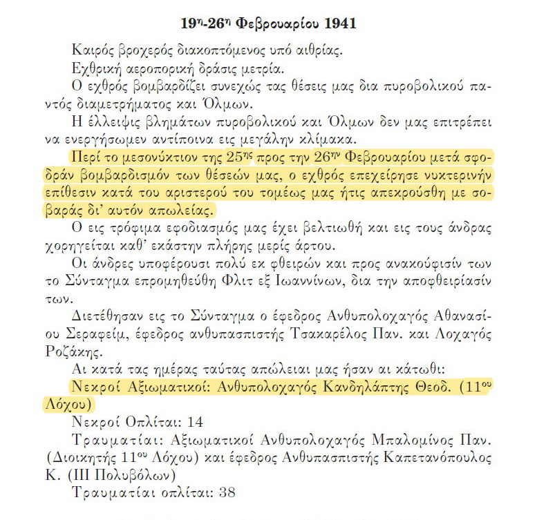 | Από το ημερολόγιο του Διοικητή του 28 ΣΠ Πηγή: Εταιρεία Μακεδονικών Σπουδών |