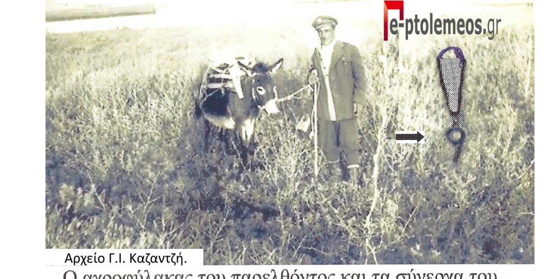Ποιος, φίλες και φίλοι παλαιοί, δε θυμάται το γραφικό εκείνο αγροφύλακα που, με μια σφυρίχτρα στο στόμα, μια βέργα από κρανιά και το .. .ταχύτατο Ι.Χ. του, το γαϊδουράκι του, τριγυρνούσε από τα βαθιά χαράματα μέχρι το βαθύ σούρουπο φυλάγοντας την παραγωγή των χιλιάδων στρεμμάτων αμπελώνων της γεωκτηνοτροφικής μας, τότε, περιοχής;