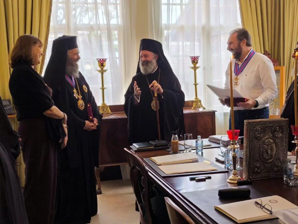 Την Τρίτη 20 Ιανουαρίου 2026, στην πόλη του Σίδνεϊ, κατά τη διάρκεια της έκτακτης συνεδριάσεως της Επαρχιακής Συνόδου της Εκκλησίας της Αυστραλίας, ο Σεβασμιώτατος Αρχιεπίσκοπος κ. Μακάριος απένειμε στον Μητροπολίτη μας κ. Ειρηναίο, τιμητική διάκριση, Σταυρό μετά Αστέρος.