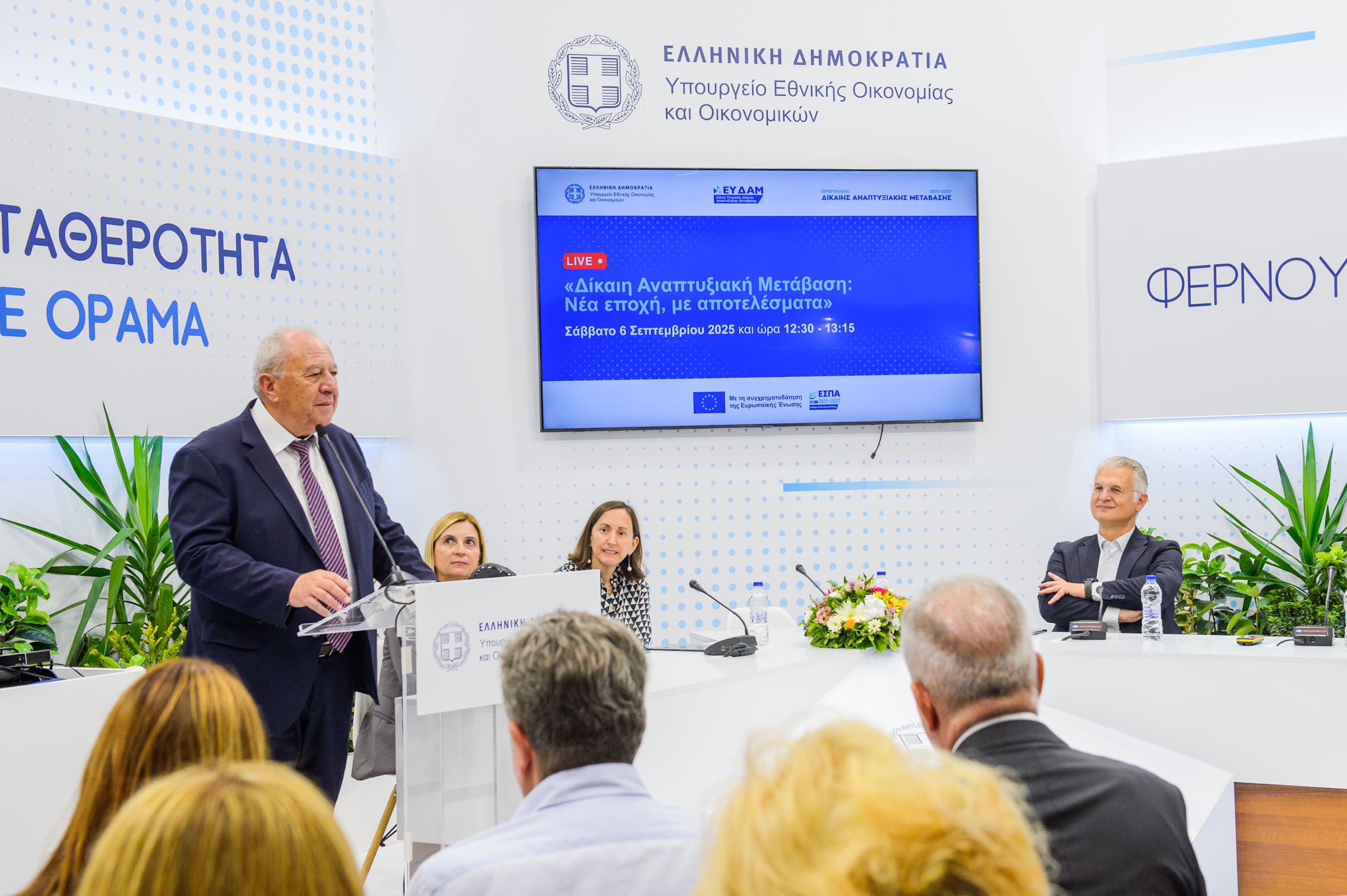 Η δυναμική του Προγράμματος αποτυπώθηκε και στην ανοιχτή εκδήλωση με τίτλο «Δίκαιη Αναπτυξιακή Μετάβαση: Νέα εποχή, με αποτελέσματα» που πραγματοποιήθηκε το Σάββατο, 6/9/2025, με τον κόσμο να δίνει δυναμικό παρών. Η εκδήλωση πραγματοποιήθηκε παρουσία του Αναπληρωτή Υπουργού Εθνικής Οικονομίας και Οικονομικών, κ. Νίκου Παπαθανάση και με τη συμμετοχή των Περιφερειαρχών Δυτικής Μακεδονίας και Πελοποννήσου, κ. Γεώργιο Αμανατίδη και κ. Δημήτρη Πτωχό, αντίστοιχα.