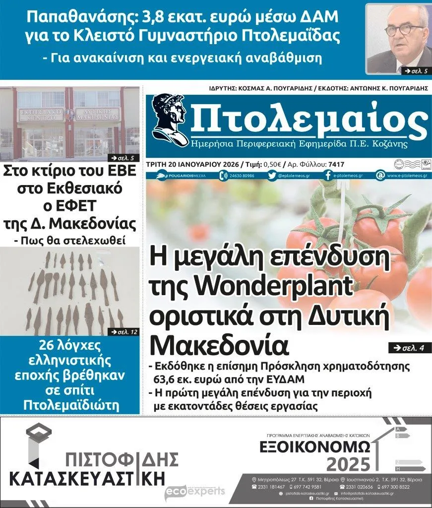 Επίσημο: Η μεγάλη επένδυση της Wonderplant οριστικά στη Δυτ. Μακεδονία -Εκδόθηκε η επίσημη Πρόσκληση χρηματοδότησης 63,6 εκ. ευρώ από την ΕΥΔΑΜ