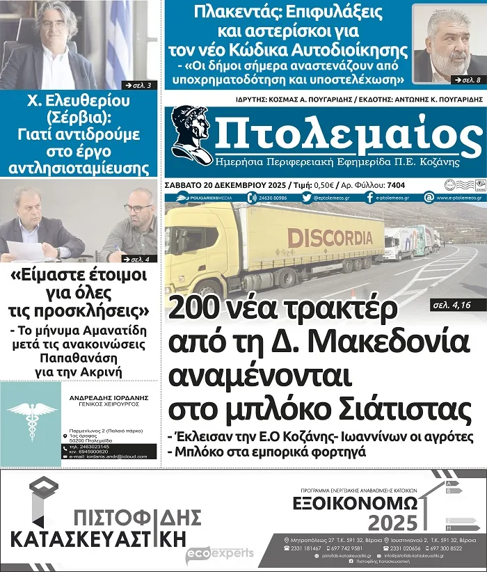 Κ. Λωτίδης: “Αναμένουμε ακόμα 200 τρακτέρ από τη Δυτική Μακεδονία στο μπλόκο της Σιάτιστας το Σαββατοκύριακο”