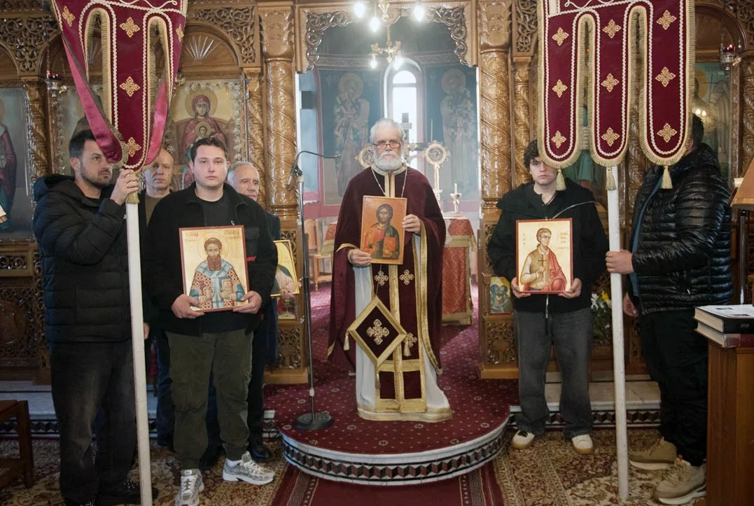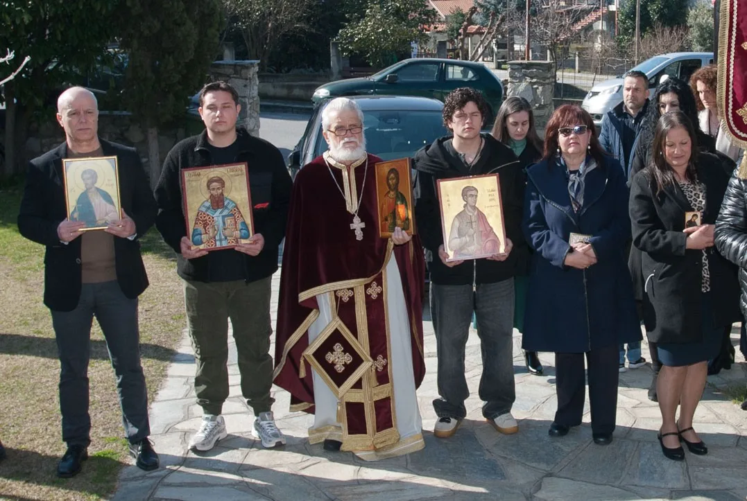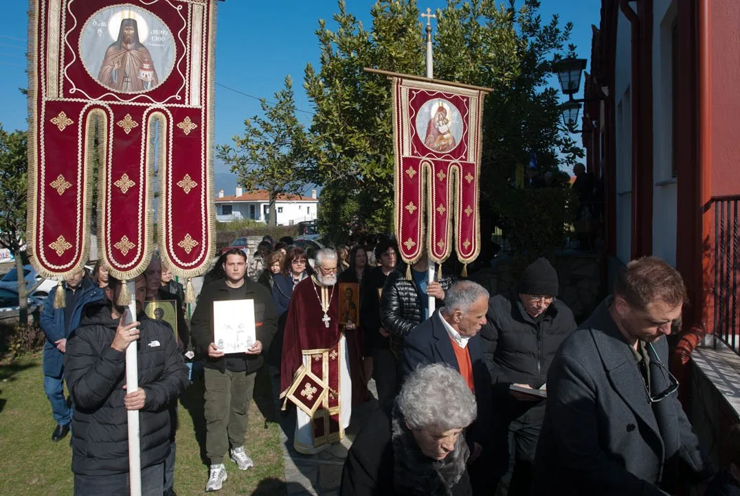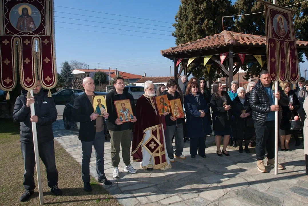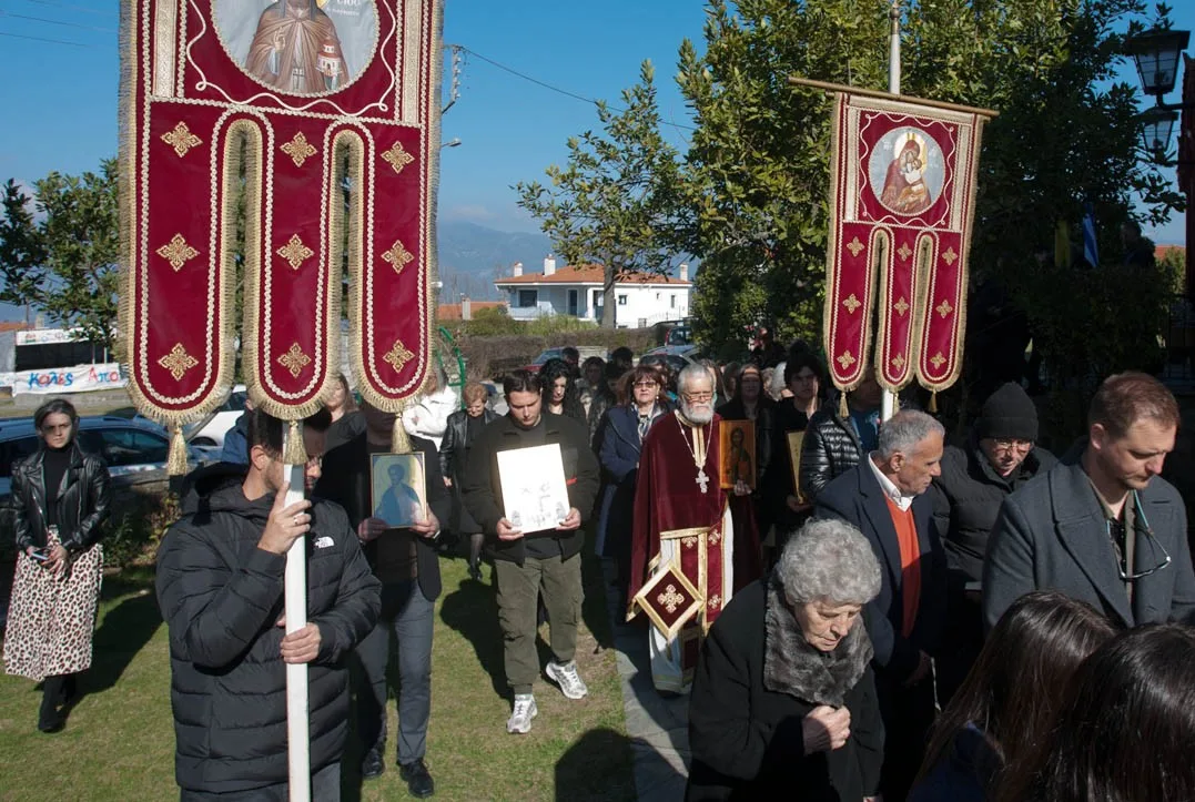 Με τη συμμετοχή πολλών παιδιών, συνοδευόμενα από τους (νέους) γονείς τους – και τη συμμετοχή όλου του εκκλησιάσματος – έγινε η λιτάνευση των φορητών εικόνων των Αγίων και των λαβάρων – της Παναγίας και του Αγίου Διονυσίου εν Ολύμπω – την Κυριακή της Ορθοδοξίας 2026, στον Άγιο Διονύσιο Βελβεντού – έξω και γύρω από το Ναό – της Ιεράς Μητροπόλεως Σερβίων και Κοζάνης.