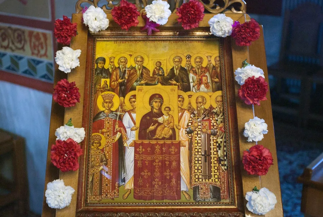 Είναι μια μεγάλη εικόνα συλλογική, λειτουργική, εικόνα που καταγράφει και υπόσχεται ένα φωτεινό και ειρηνικό μέλλον, μέσα στους βομβαρδισμούς και στον φρικτό θάνατο γύρω μας, μέσα στην οποία υπάρχουν οι μικρές ανεκτίμητες εικόνες – τα πρόσωπα των παιδιών μας, των εγγονών μας, των μαθητών μας, πρόσωπα αγνά, που αναπτερώνουν την ελπίδα, που αναστηλώνουν τον άνθρωπο μέσα στον άνθρωπο, ανυψώνονται και αγιάζονται από τις εικόνες του Χριστού, της Παναγίας και των Αγίων, των Μαρτύρων και των Οσίων της Εκκλησίας.