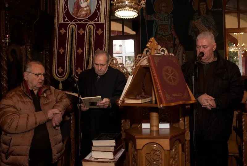 Έψαλαν οι ψάλτες: Γιώργος Κατσιούλης, Αντώνης Τζούνας, Γιώργος Στεργιόπουλος, Βασίλης Καρανώτας, Αριστείδης Σταμάτης, Δήμητρα Κίτση. Διακονητές στο Ιερό: Περικλής Παπαγεωργίου, Λάμπρος Κουτσιούκης, Διονύσιος Τσιουκαρδάνης μαθητής Γυμνασίου.
