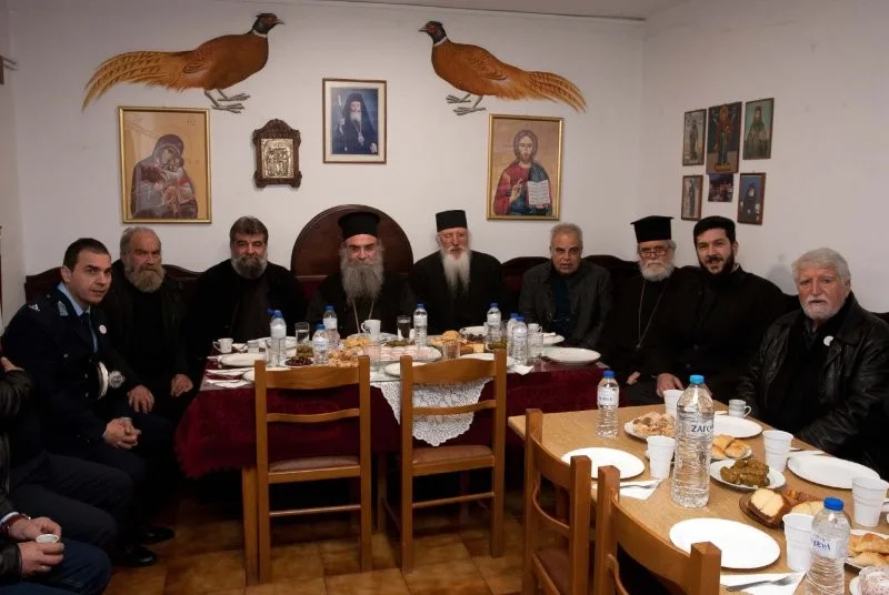 Τον Επίσκοπο και την Αγία Τράπεζα (στον Εσπερινό και στη Θεία Λειτουργία) περιστοίχισαν οι πατέρες: Αρχιμ. Συμεών (Ηγούμενος Ι. Μονής Αγίου Νεκταρίου Παλαιογρατσάνου), Πρωτοπ. Κωνσταντίνος Κώστας (Άγιος Διονύσιος Βελβεντού και Αρχιερατικός Α.Π.Β.), Πρωτοπ. Νικόλαος Τσιπλακάκης (Βαθύλακκος, Μεσιανή, Κουβούκλια), Πρωτοπ. Λουκάς Κουρκούτας (Πλατανόρρευμα, Μοσχοχώρι, Κρανίδια), Πρωτοπ. Νικόλαος Κανταρτζής (συνταξιούχος), Πρωτοπ. Αθανάσιος Γεωργιάδης (Κοίμηση της Θεοτόκου Βελβεντού), Οικον. Αθανάσιος Παπαϊωάννου (Ίμερα, Αύρα), Οικον. Λάζαρος Βασδέκης (Λεύκαρα, Νεράιδα, Ροδίτης, Άγιος Βαραδάτος), Πρεσβ. Κωνσταντίνος Παραλής (Καστανιά, Λάβα), Διάκονος Νικηφόρος Καρπενήσης από Αιανή.