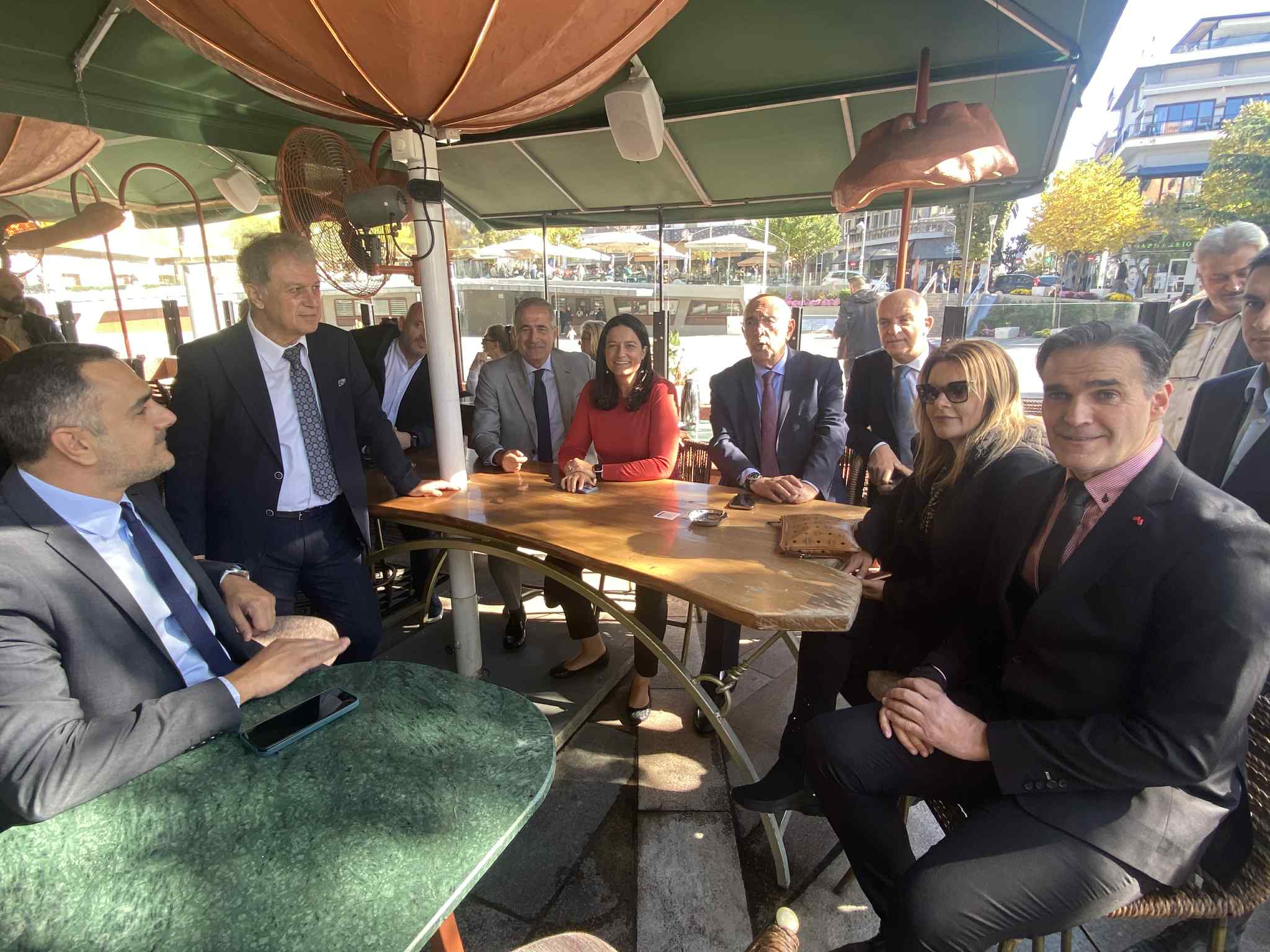 Στη συνέχεια πεζή επισκέφθηκε κεντρικό καφέ της πόλης της Κοζάνης, όπου ήπιε τον καφέ της, σε μια κίνηση που δεν συνηθίζεται τελευταία από Υπουργούς της κυβέρνησης σε ανάλογες επισκέψεις, με την παρουσία της Αστυνομίας πάντως να είναι εμφανώς αυξημένη.