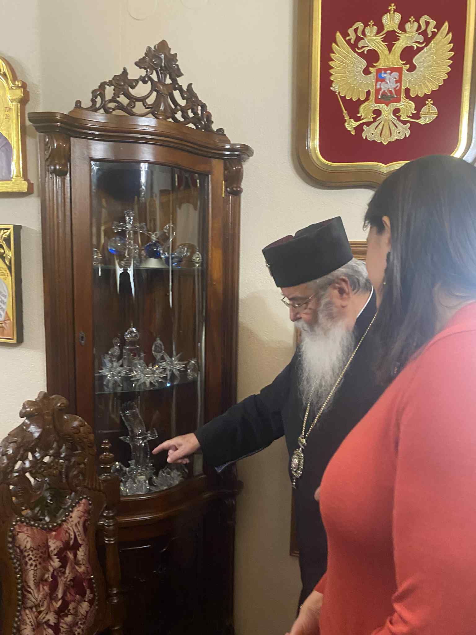 Η Υπουργός Εργασίας κατευθύνθηκε στο Επισκοπείο της Μητρόπολης, αφού πέρασε πρώτα από τον Μητροπολιτικό Ναό του Αγίου Νικολάου, συζήτησε με τον Μητροπολίτη Σερβίων και Κοζάνης πολλά θέματα, απόλαυσε την ξενάγηση από τον ίδιο, ενώ εντυπωσιάστηκε από τα εκθέματα στο Κειμηλιαρχείο της Μητρόπολης.