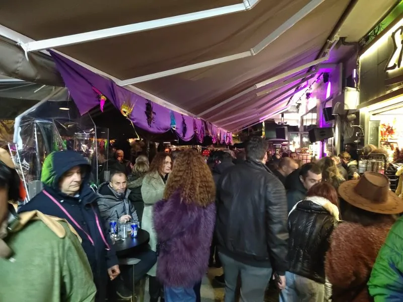Τα μαγαζιά εστίασης του κέντρου γέμισαν ασφυκτικά από ντόπιους και επισκέπτες, με τη διασκέδαση να κορυφώνεται τα ξημερώματα της Κυριακής, παρά το τσουχτερό κρύο, με τη θερμοκρασία να αγγίζει μόλις τους 3 βαθμούς Κελσίου, ο κόσμος δεν πτοήθηκε και βγήκε να διασκεδάσει, απολαμβάνοντας στο έπακρο την ξεχωριστή αποκριάτικη ατμόσφαιρα.