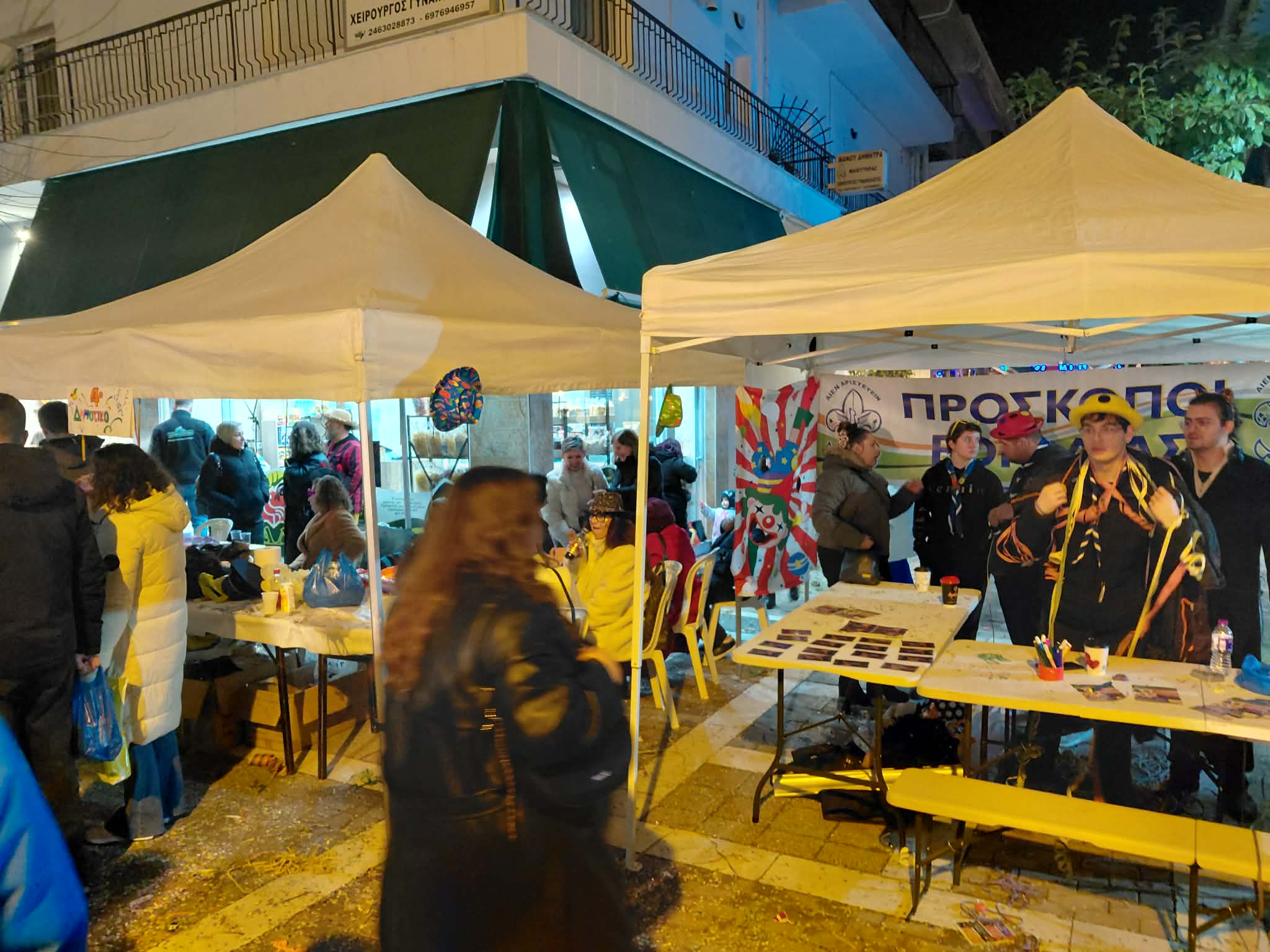 Από τις 17:30 και μετά, DJs έδωσαν αποκριάτικο ρυθμό σε όλο το εμπορικό κέντρο, με τη μουσική να ακούγεται σε κάθε γωνιά. Η οδός Νοσοκομείου παρέμεινε κλειστή για την κυκλοφορία, φιλοξενώντας παιδικές δράσεις, μπαλονοκατασκευές, face painting και κεράσματα από συλλόγους της περιοχής.
