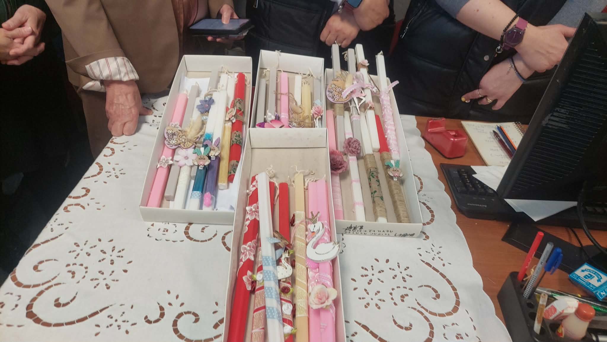 Όπως κάθε χρόνο έτσι και εφέτος με αφορμή τις επικείμενες εορτές του ΠΆΣΧΑ, η Διευθύντρια της ΣΑΕΚ Πτολεμαΐδας Σοφία Μπέση συνοδευόμενη από την Εκπαιδεύτρια Ναταλία Πετροπούλου και Σπουδάστριες , επισκέφτηκαν το Περιφερειακό τμήμα του Ελληνικού Ερυθρού Σταυρού Πτολεμαΐδας, προσφέροντας πασχαλινές λαμπάδες που κατασκεύασε το Τμήμα “Βοηθός Παιδαγωγών Πρώιμης Παιδικής Ηλικίας’ .