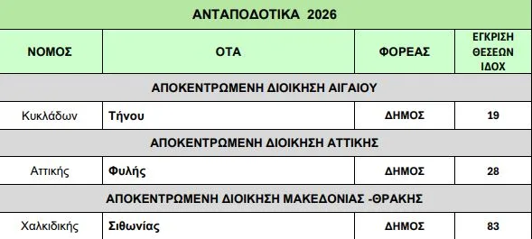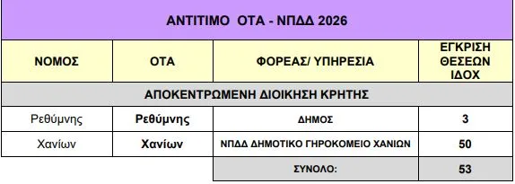 Επιπλέον, εγκρίνει την πρόσληψη πενήντα τριών (53) ατόμων με σχέση εργασίας ιδιωτικού δικαίου ορισμένου χρόνου για χρονικό διάστημα έως οκτώ (8) μήνες στους φορείς του παρακάτω πίνακα, για τη στελέχωση υπηρεσιών που παρέχουν έργο έναντι αντιτίμου.