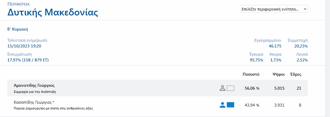 ΥΠΕΣ: Συγκεντρωτικά αποτελέσματα για την Περιφέρεια στο 17,97% – Μπροστά για την ώρα ο Αμανατίδης