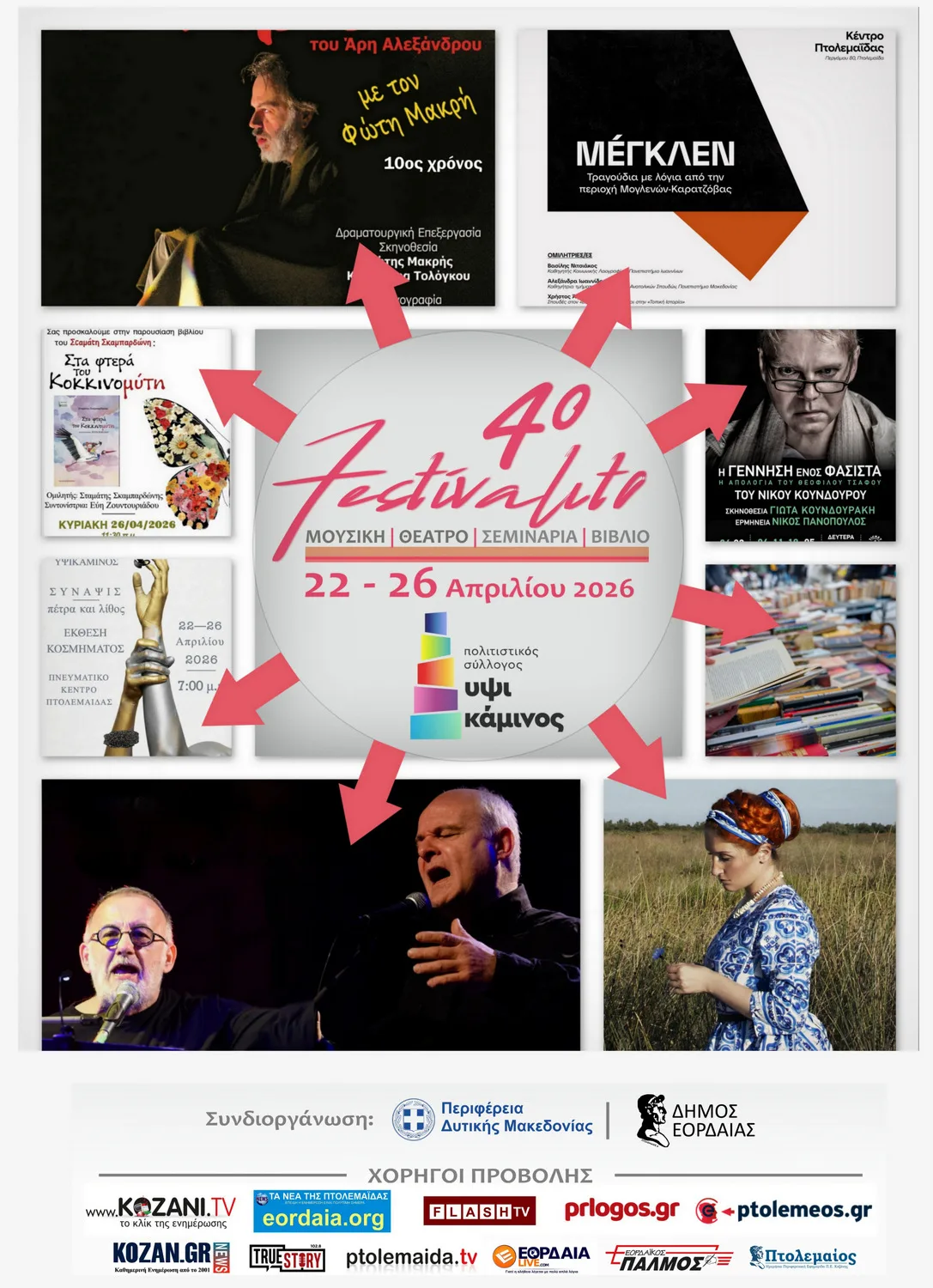 Με την έναρξη, το Πνευματικό Κέντρο Πτολεμαΐδας μετατρέπεται σε χώρο συνάντησης υλικών, ιδεών και καλλιτεχνικής έκφρασης. Η ΣΥΝΑΨΙΣ παρουσιάζει την έκθεση κοσμήματος και πυρογραφίας «Μέταλλο και Λίθος», μια εικαστική πρόταση που αντλεί έμπνευση από την παράδοση της μεταλλοτεχνίας και τη σύγχρονη καλλιτεχνική ματιά. Μέσα από το μέταλλο, το ξύλο και τον λίθο, τα έργα συνομιλούν μεταξύ τους, δημιουργώντας μια δημιουργική «σύναψη» υλικών και μορφών που εγκαινιάζει το φεστιβάλ με μια ζωντανή εμπειρία τέχνης.